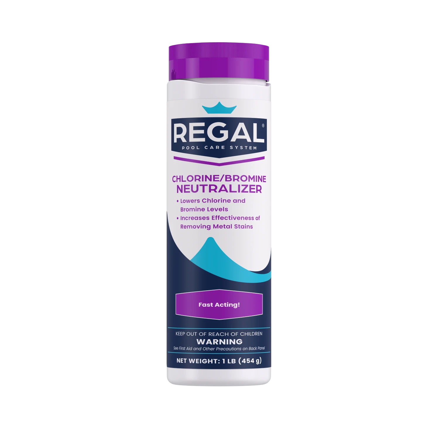 Swimming pool water should have a chlorine level between 2.0 - 4.0 ppm to be safe for swimming. This product will quickly lower excessive chlorine levels when used as directed. Increases effectiveness of removing metal problems with Regal Supplements