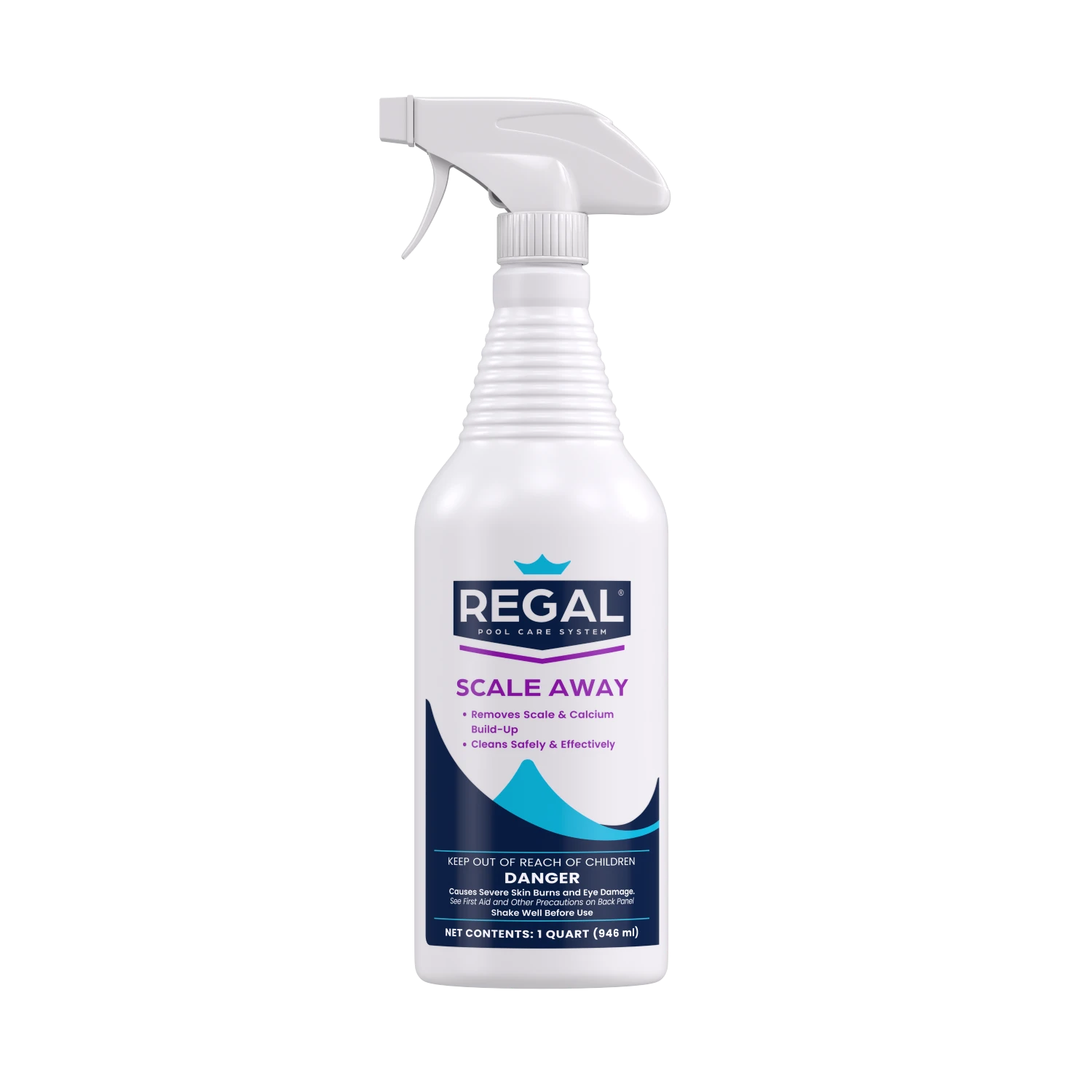 Use this convenient full strength spray to quickly remove scale and calcium buildup from tile or vinyl. Prevent and treat specific water problems with Regal Chemicals Supplements. The perfect complement to your pool care clarifiers and stain removers. Reapply at first signs of scale re-appearance Available in 1 quart size